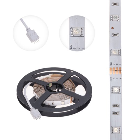 Лента светодиодная 12В, SMD3030, 10,5Вт/м, 30 LED/м, RGB, 10мм, 3м, с разьемом для контроллера 4PIN, IP20 LAMPER