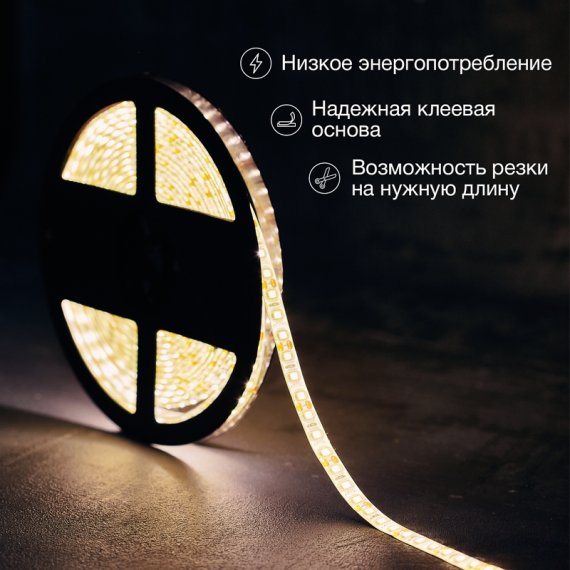 Светодиодная лента LAMPER представляет собой гибкую ленту на самоклеящейся основе с установленными на ней светодиодами. Применяется для создания световых акцентов, дополнительного или декоративного освещения, а также для подсветки мебели, витрин, потолков и отдельных участков помещения.