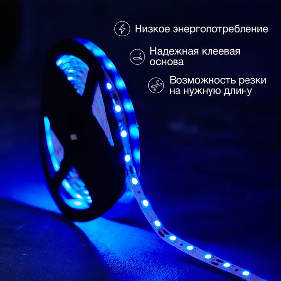 Лента светодиодная 12В, SMD5050, 14,4Вт/м, 60 LED/м, синий, 10мм, 5м, IP20 LAMPER