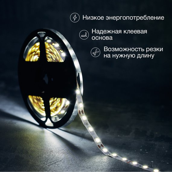 Светодиодная лента LAMPER представляет собой гибкую ленту на самоклеящейся основе с установленными на ней светодиодами. Применяется для создания световых акцентов, дополнительного или декоративного освещения, а также для подсветки мебели, витрин, потолков и отдельных участков помещения.