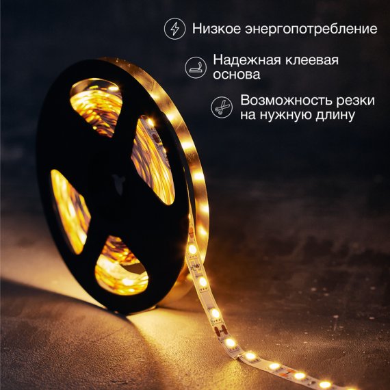 Светодиодная лента LAMPER представляет собой гибкую ленту на самоклеящейся основе с установленными на ней светодиодами. Применяется для создания световых акцентов, дополнительного или декоративного освещения, а также для подсветки мебели, витрин, потолков и отдельных участков помещения.