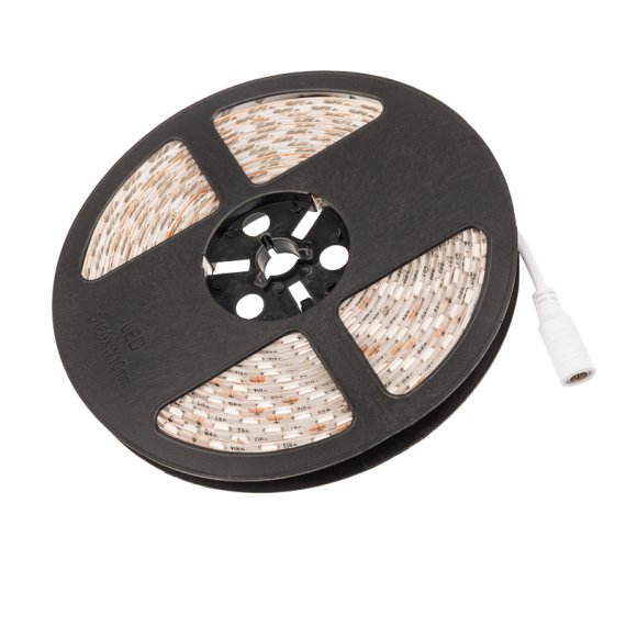 Лента работает от напряжения 12 В, поэтому при подключении к обычной бытовой сети 220 В потребуется дополнительный источник питания.