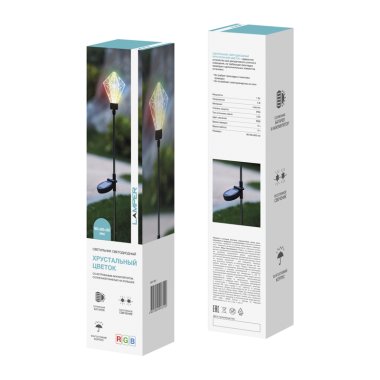 Степень пылевлагозащиты IP65 позволяет устанавливать изделие в неблагоприятных условиях и защищает устройство от любых негативных воздействий окружающей среды. Большим преимуществом является скорость и простота монтажа, а также отсутствие необходимости в прокладке проводов, так как светильник работает от солнечной энергии. Цвет свечения – RGB.