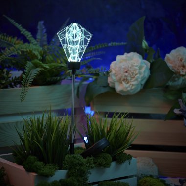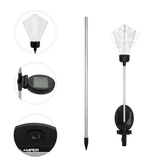 Светодиодный светильник «Хрустальный Цветок» LAMPER может использоваться в качестве газонного источника света. Он способен украсить пространство и гармонично смотрится при любом архитектурном стиле. Оснащен встроенным аккумулятором и солнечной панелью. Благодаря высокому качеству используемых материалов изделие имеет долгий срок службы.