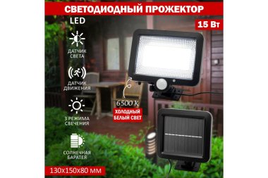 Прожектор Lamper NEW AGE LED COB 15 Вт 6500 K IP65, солнечная панель, датчики движения 602-1002 с яркими светодиодами СОВ нового поколения и отдельной выносной солнечной панелью позволяет использовать его как внутри, так и снаружи зданий.