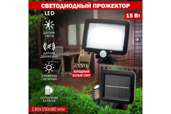 Светильник прожекторный NEW AGE 6500K, со встроенным аккумулятором, солнечной панелью, датчиками движения и освещенности LAMPER