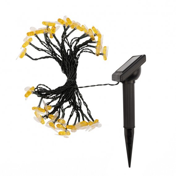 Каскад Lamper Янтарные Пчелы LED 10 м с выносной солнечной панелью 2 м и аккумулятором, IP65, теплое белое свечение